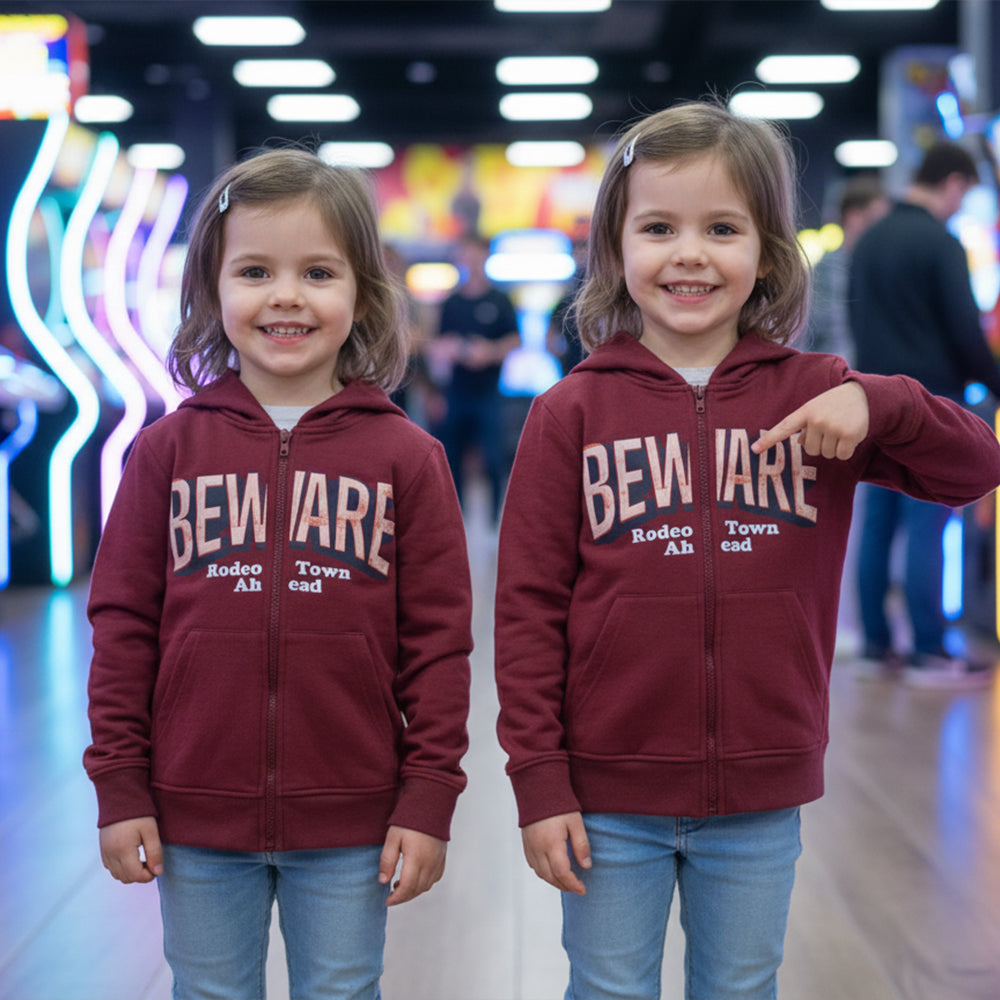 L&S Beware Rodeo Town Ahead Front Pocket Style Rust Red Fleece Zipper Hoodie 14371