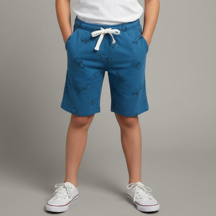 L&S White Cord All Over Skateboard Print Blue Shorts 14005