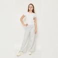 L&S White Cord Plain Textured Grey Plazo 14650