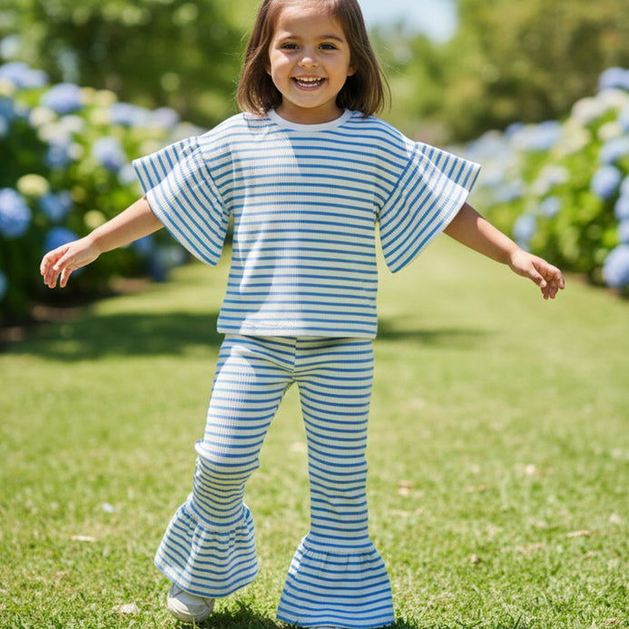 LE Styled Bottom Trouser With Styled Sleeves Blue And White Strips 2 piece set 14799