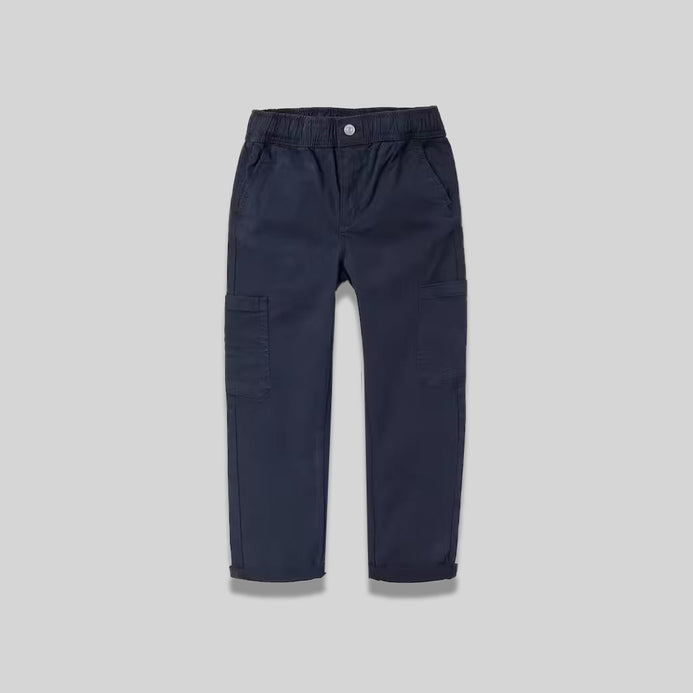 ZY Kids Elastic waist with Silver button Navy Blue Cotton Pant 14136