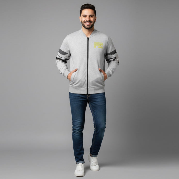HF The Concept Of Game Applic CamuFlage Stripes Slevees Mock Neck Grey Terry Zipper 14339