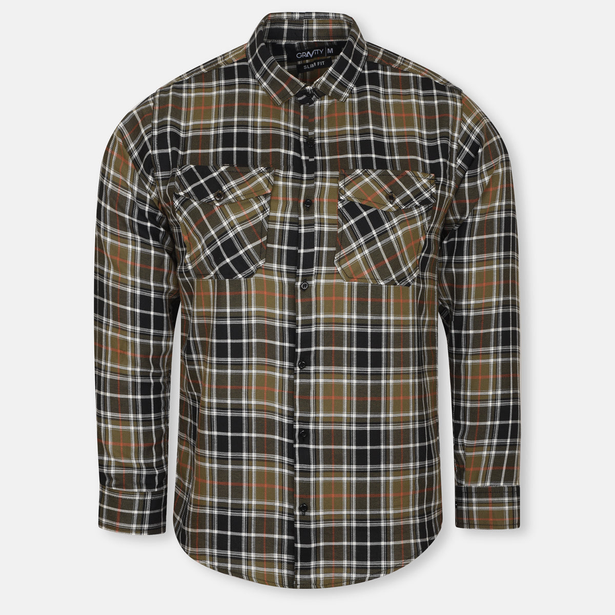 - GT Black Check Green Flannel Warm Casual Shirt 10516
