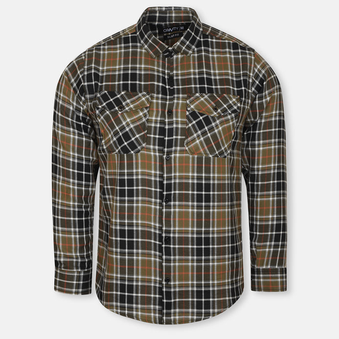 GT Black Check Green Flannel Warm Casual Shirt 10516