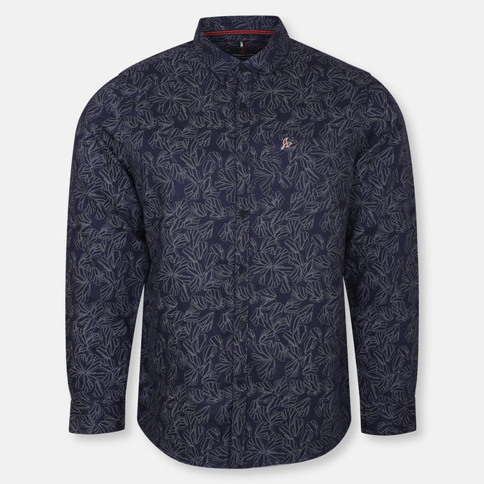 - LBD Leave Sketch Print Navy Blue Casual Shirt 10023