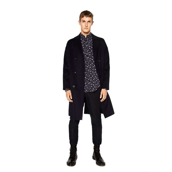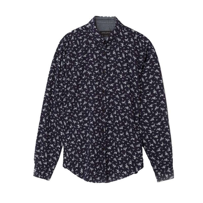 - ZR Man Long Sleeve Floral Print Shirt Navy Blue