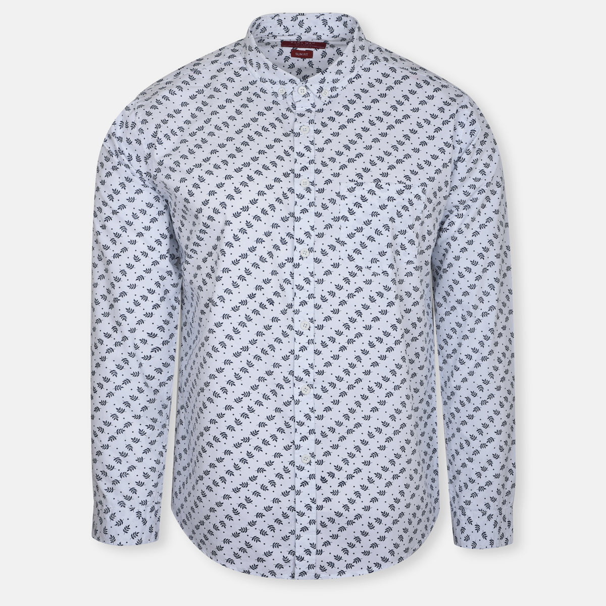- ZR Leaf Stem Print White Casual Shirt 10027