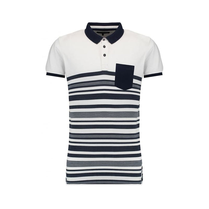 - TS Heritage Mens White Printed Navy Stripe Polo