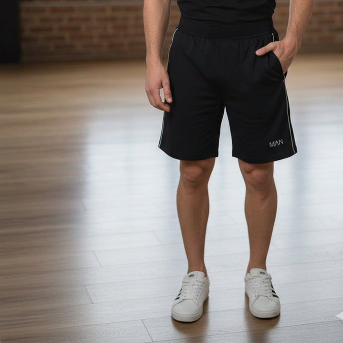 - MA Grey Piping Sided Zip Pocket Black Terry Shorts 14493