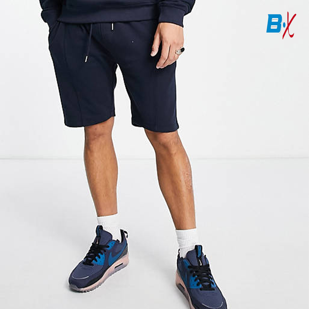 Basic plush Bermuda shorts. Tie waist. Side pockets. Main Fabric: 87% cotton, 13% polyester.