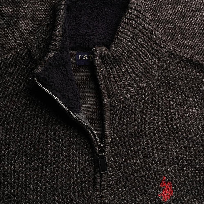 - U Zip Fur Neck Textured Dark Grey Sweater 10080