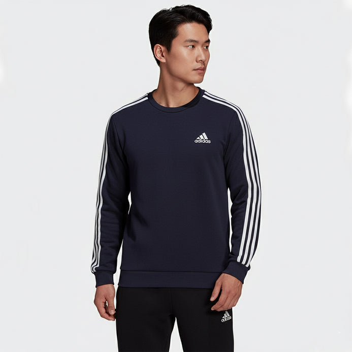 - Embroided Logo 3 Stripes Sports Fleece Navy Blue Sweatshirt 10449