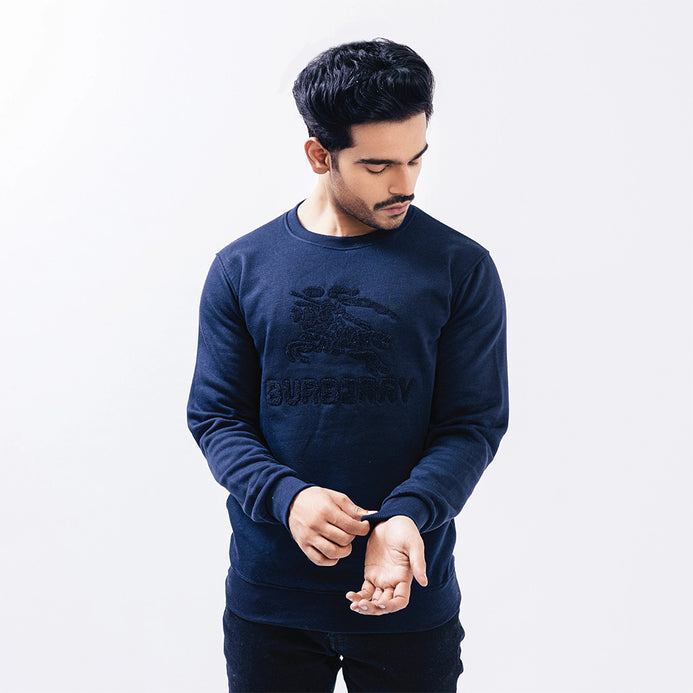 - BB Front Embroided Logo Navy Blue Fleece Sweatshirt 13701