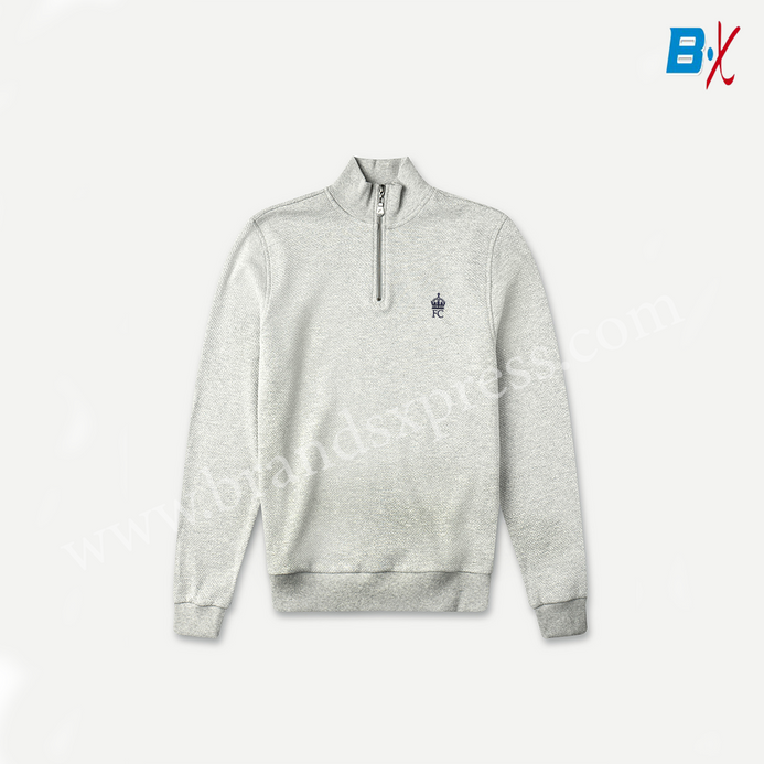 FC Logo Zip Front Moek Neck Fleere Gray Sweattshirt 10040