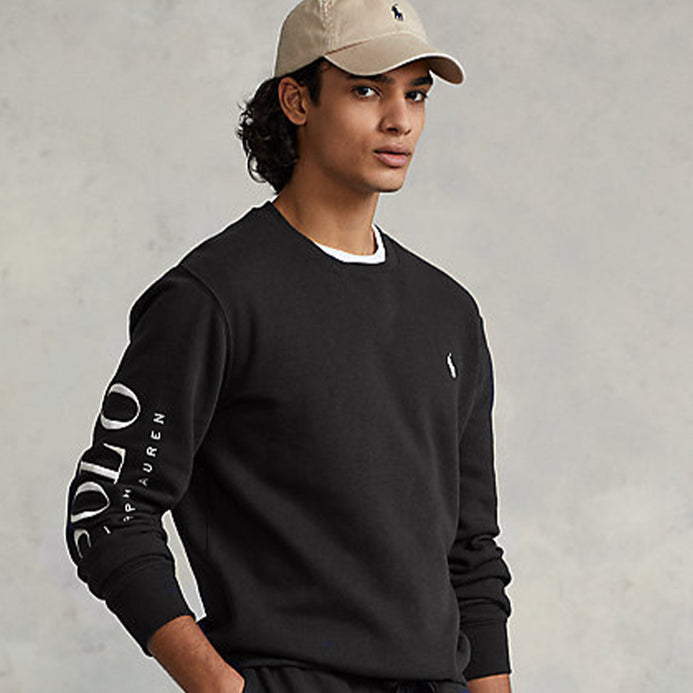 - RL Small Pony Logo Sleeves Print Black Fleece Sweatshirt 10612