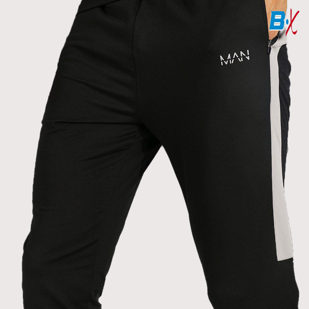 BM Man Side White Panel Zip Pockets Black Trouser 10074