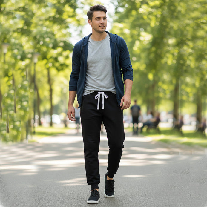 - NT White Cord Zip Pocket Black Fleece Trouser 14470