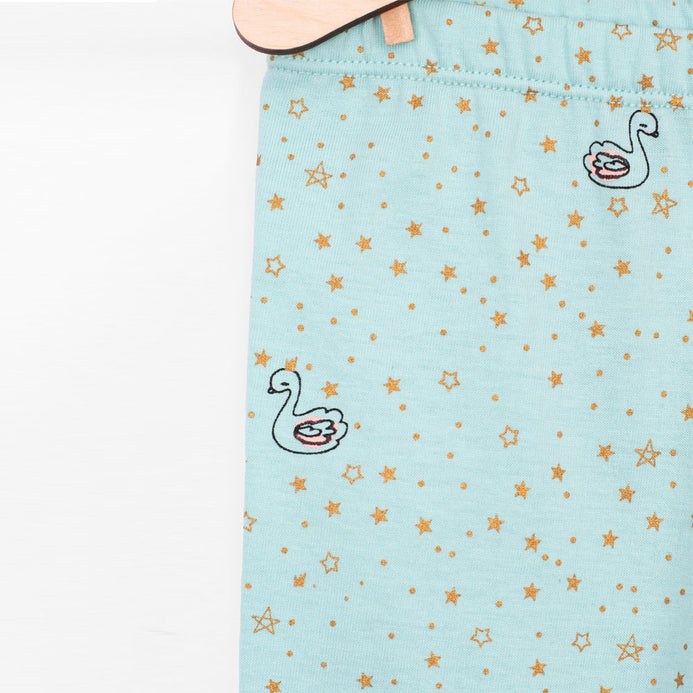 51015 Sea Green With Duck & Starts Print Legging 4284