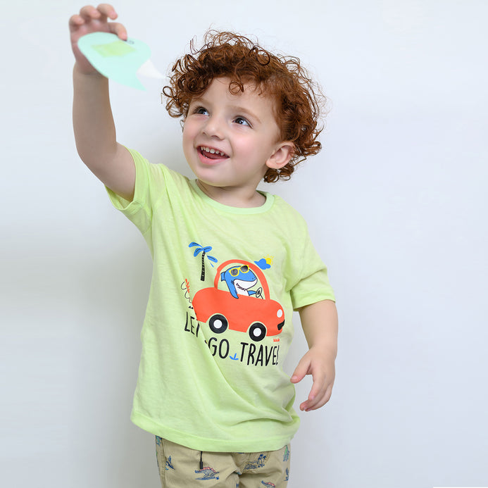 B.X Lets Go Travel Shark Soft Green Tshirt 4976