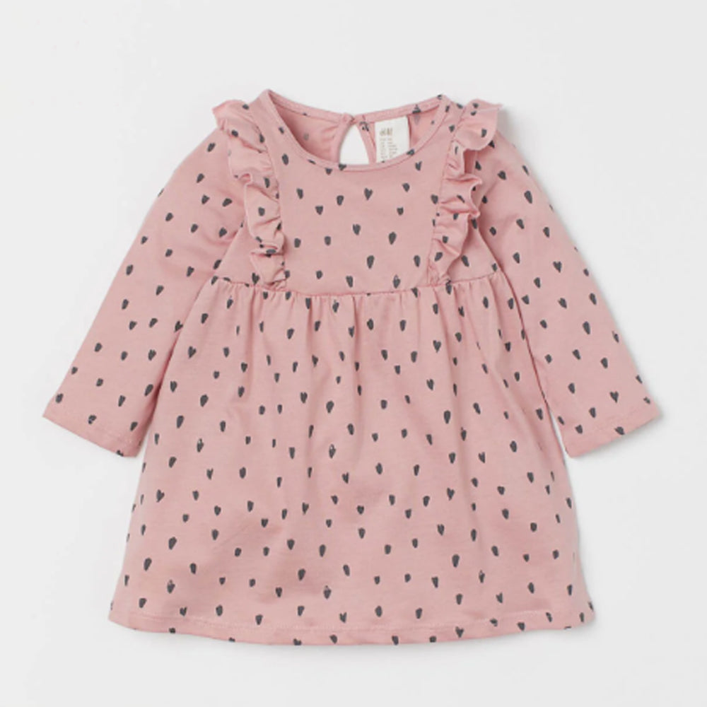 - HM All Over Spot Pink Full Sleeves Frock 12264