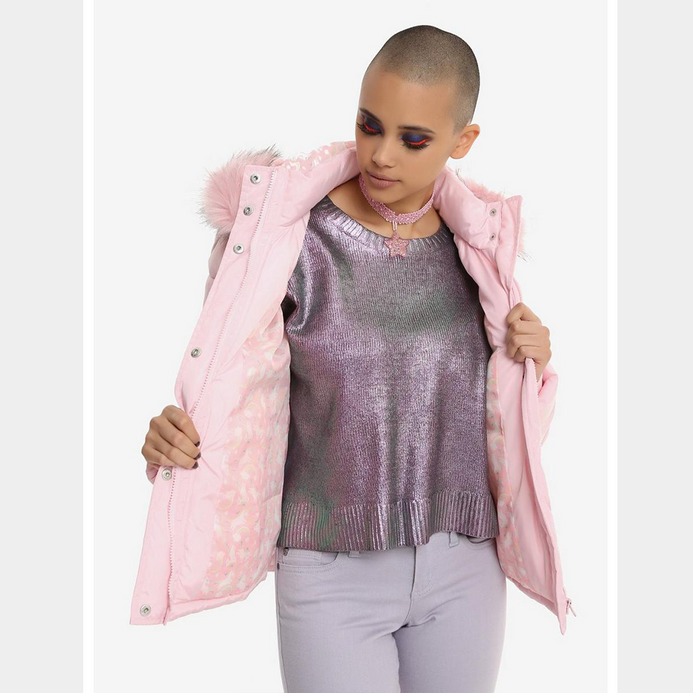 Amad Ali Hot Topic Faux Fur Pink Unicorn Puffer Jacket 10460