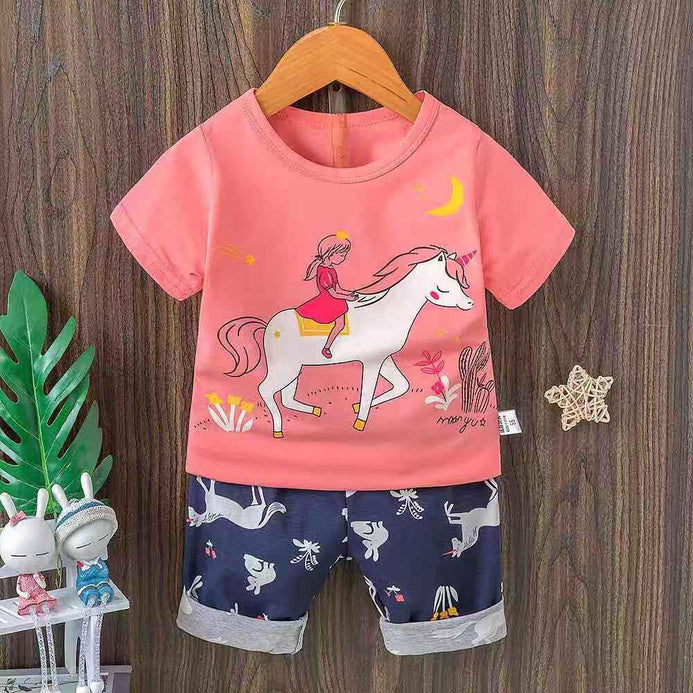 - JI Girls On Unicorn Corel 2 Piece Long Nikkar Set 4498