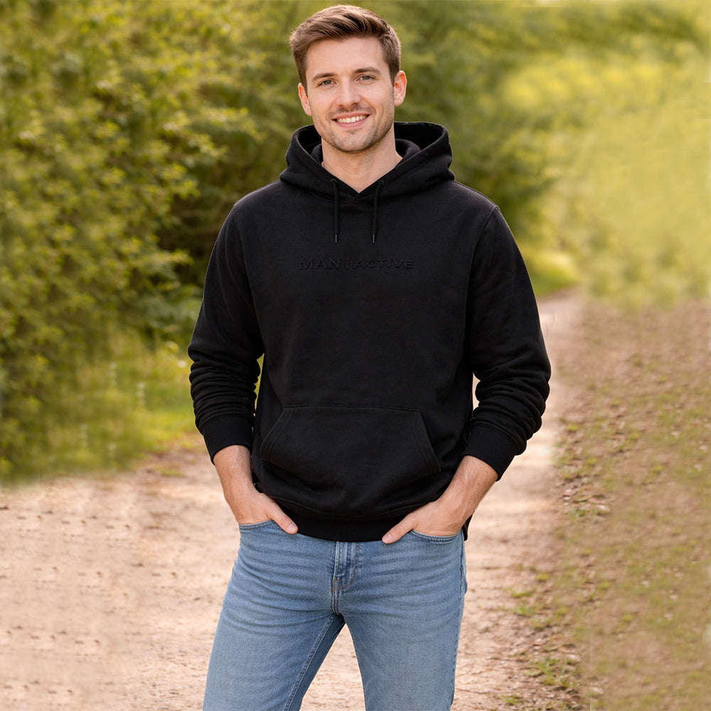 - MA MAN ACTIVE Empossed Kangroo Pocket Style Black Terry Hoodie 14308