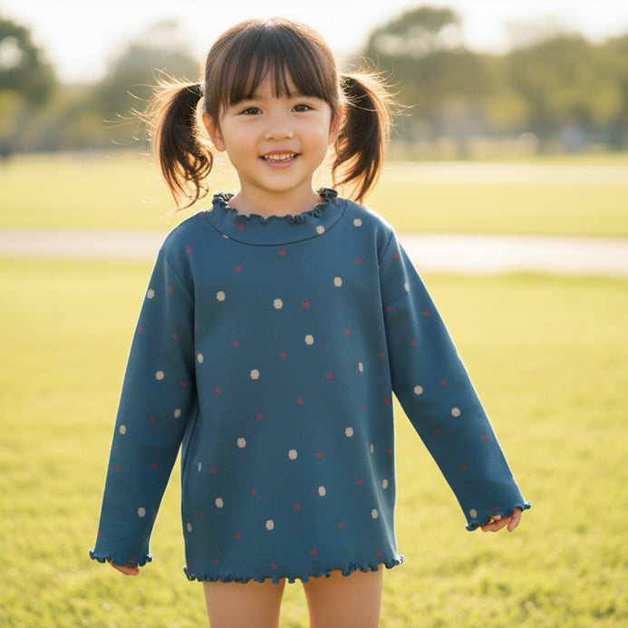 - PRNT Smiley Face Flower & Heart Print Blue Top 14545