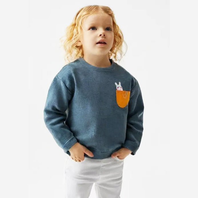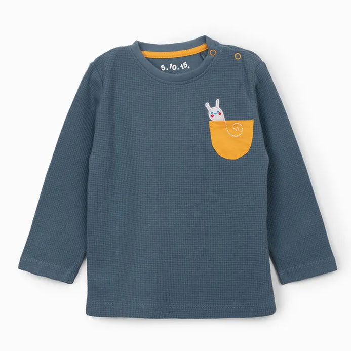 5.10.15 Snail Embroided With Small Pocket Thermal Cadet Blue Sweatshirt 13759