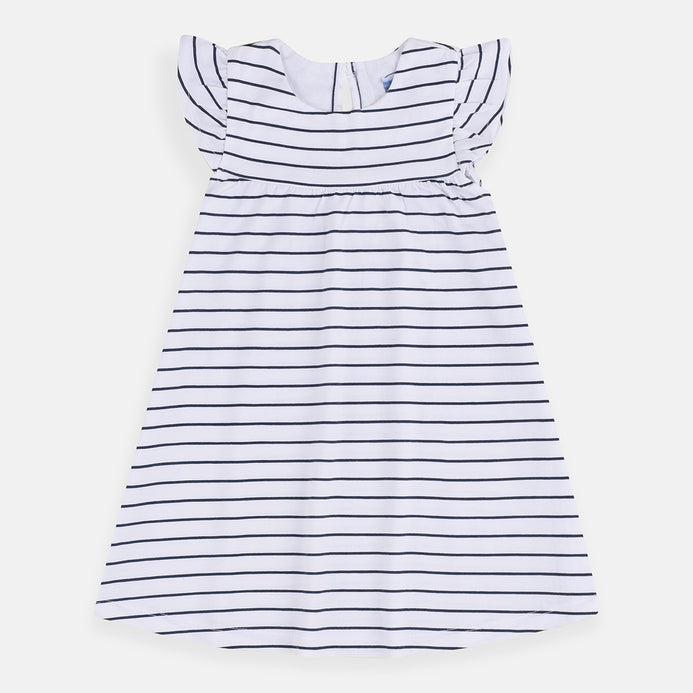 Bab Clb Frill Sleeve Black Lines White Frock 3876