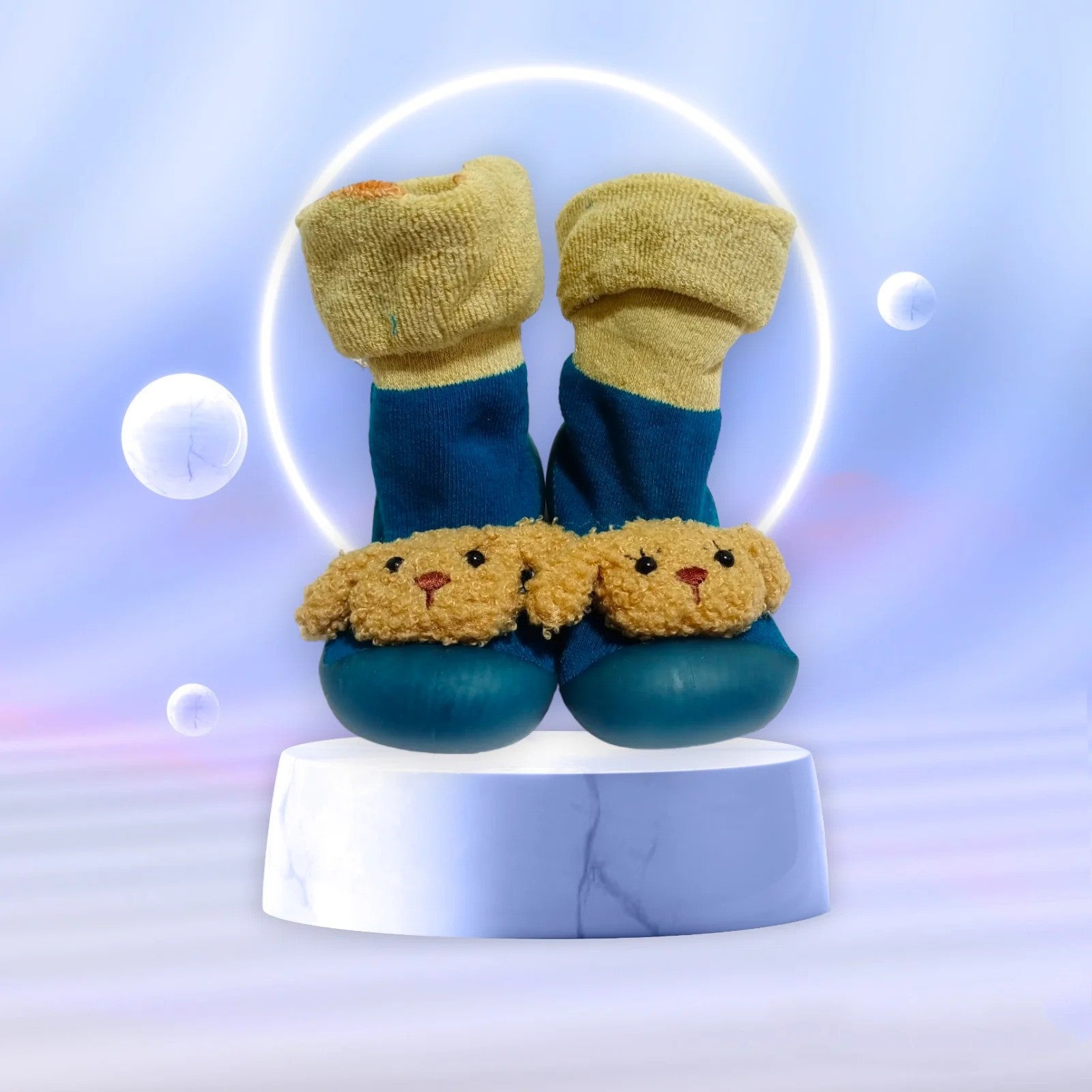 CN Fluffy Puppy Aplic Teal Silicon Bottom Socks Shoes 12586