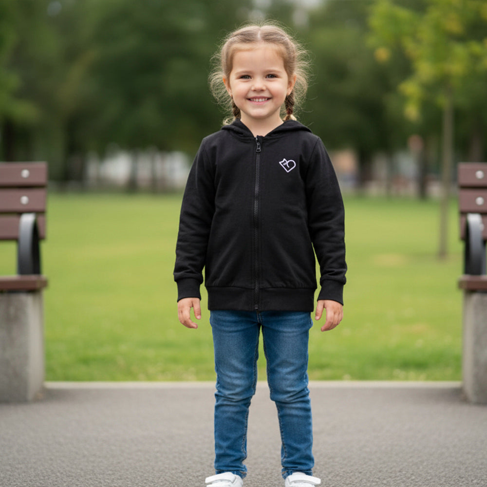 L&S Cat Applic Sided Pocket Black Terry Zipper Hoodie 14566