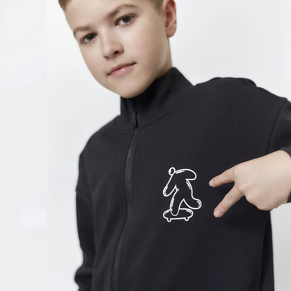 L&S Skateboat Print Sided pocket Black Fleece Zipper 14986