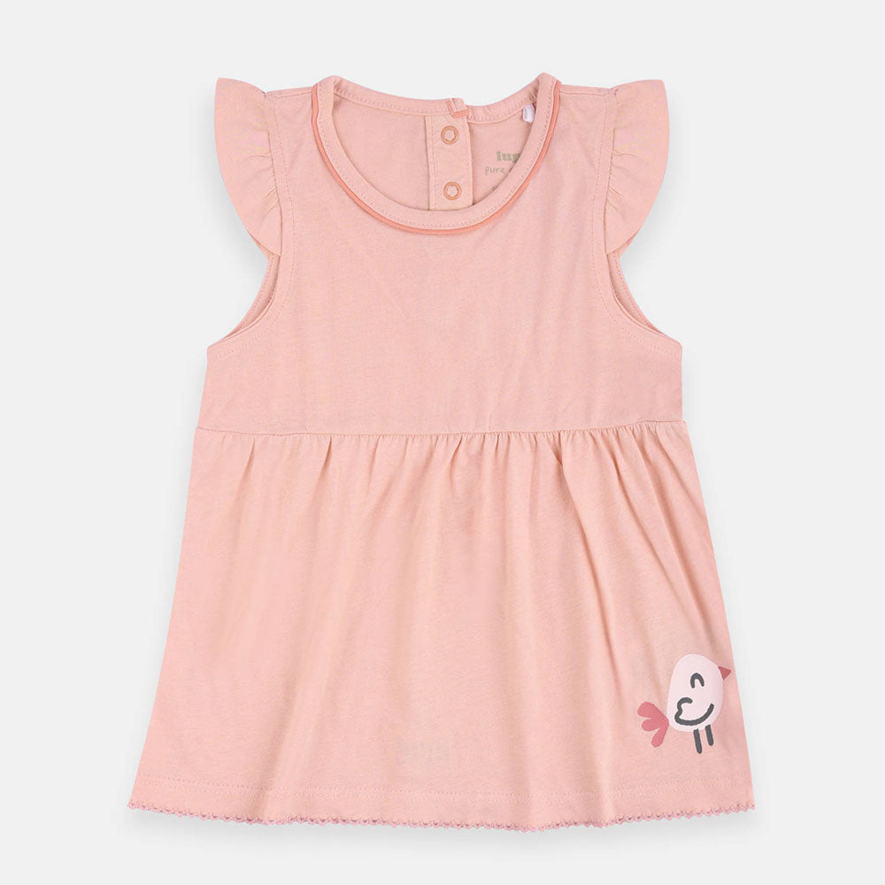 LUP Baby Tunika Bird Print Tea Pink Frock 1491