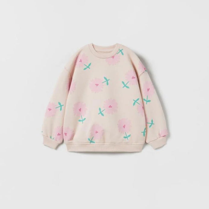 ZR All Over Flower Print T-Pink Light Fleece Sweatshirt 13735