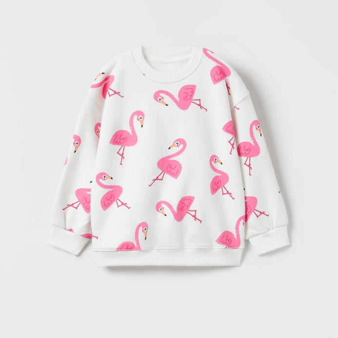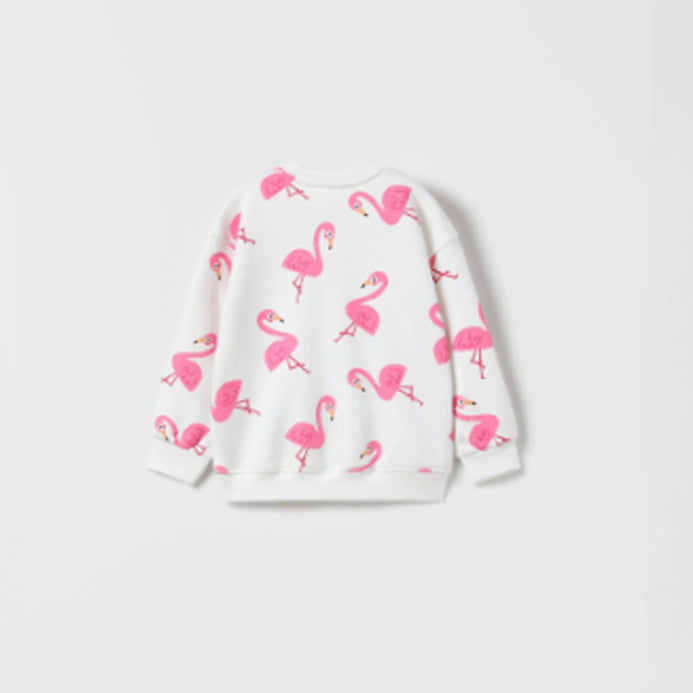 ZR All Over Swan Print White Light Fleece Sweatshirt 13740