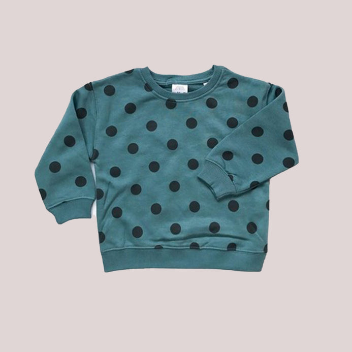 ZR Black Polka Dots Dark Green Light Fleece Sweatshirt 13739