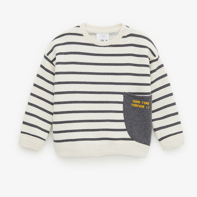 ZR Black & White Stripe Side Pocket Goal Time Sweatshirt 2404