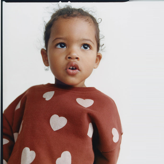 ZR Heart Print Down Shoulder Loose Rust Sweatshirt 7575