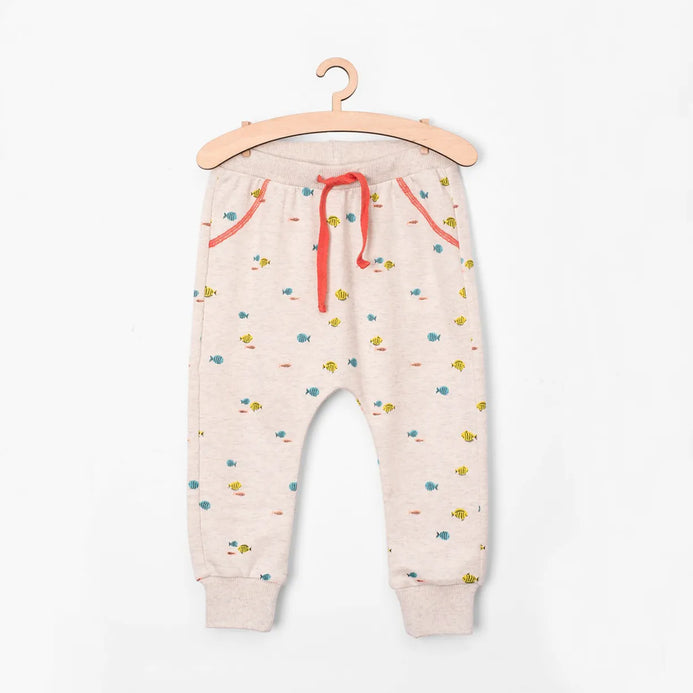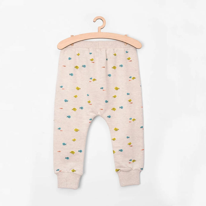 - 5.10.15 All Over Fish Print off White Light Fleece Trouser 13590