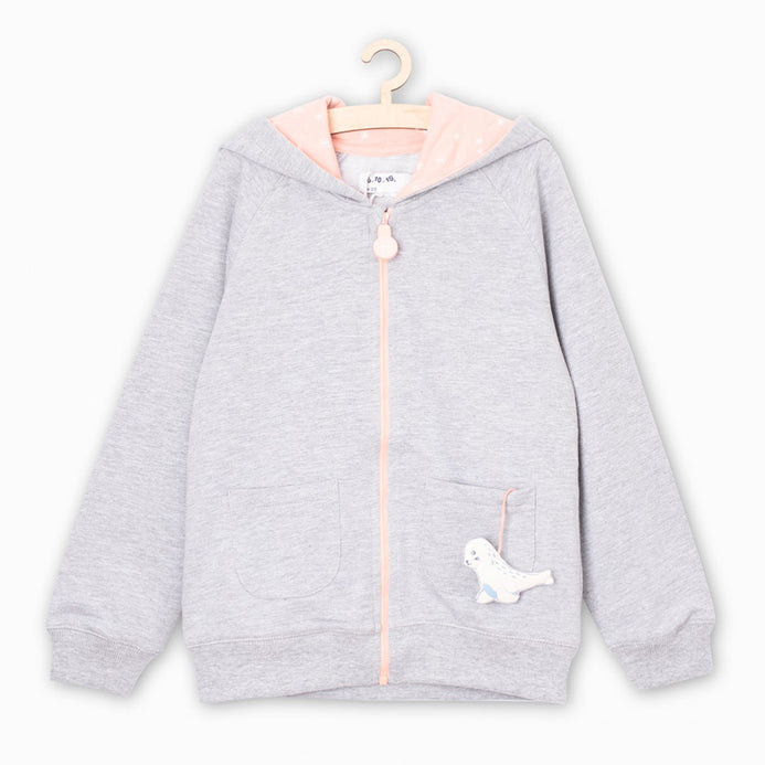 51015 Contrast Cap Inner Peach Zip Grey Zipper Hoodie 8434