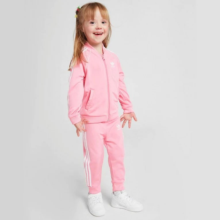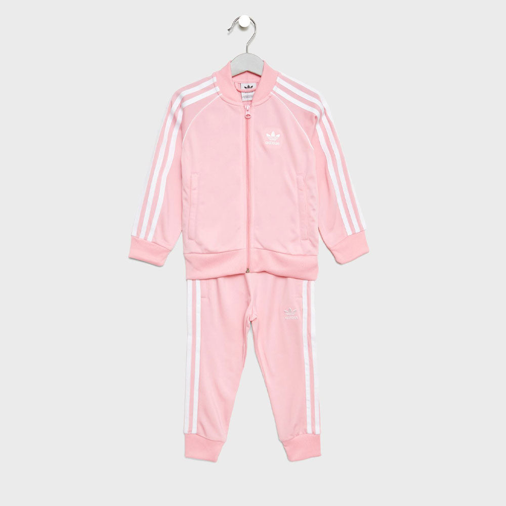 Get them reppin' a timeless adi look with this infants' SS Tracksuit . In a Pink colourway, this downsized suit is built from smooth terry fabric for a sporty, retro look. It comes with a Dark full zip track top and matching pants for the ultimate 3-Stripes 'fit. With long raglan sleeves and an elasticated waistband with a Cord for a custom fit, this tracksuit is finished with contrasting 3-Stripes running down the sleeves and legs for a true adi finish.