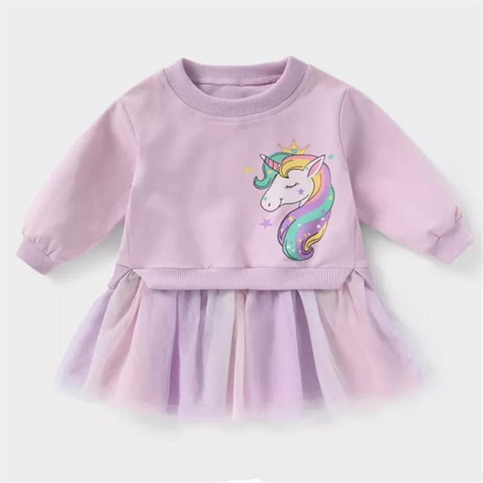 Anc Lal Multi Unicorn Light Purple Frock 3244