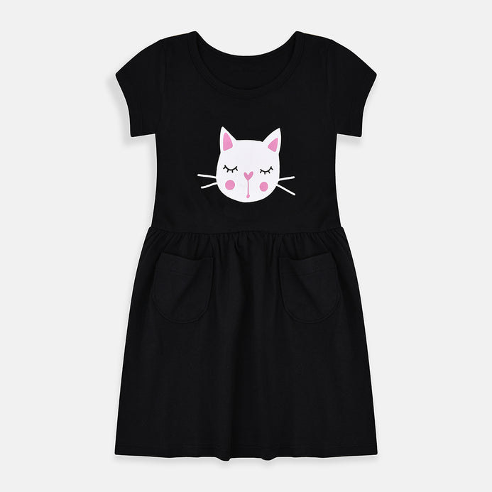 B.X Cat Face Black Pocket Frock 7533