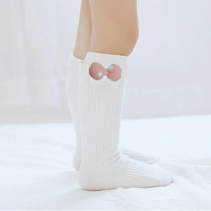 - BBW Polka Dots Bow Style White Long Socks 12532