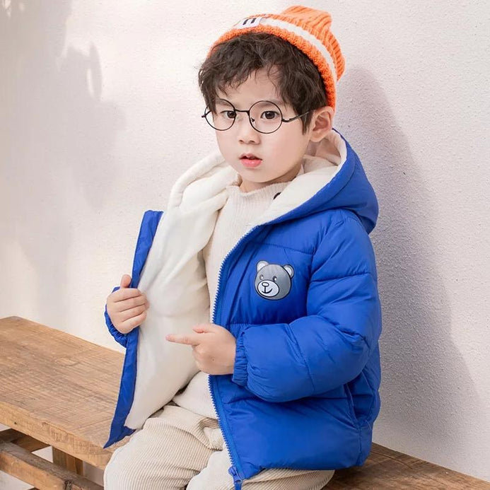 Duyi Bear Print Fleece Inner Royal Blue Puffer Jacket 7632
