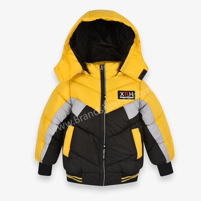 - HCF Color Block Yellow & Black Hooded Puffer Jacket 9817