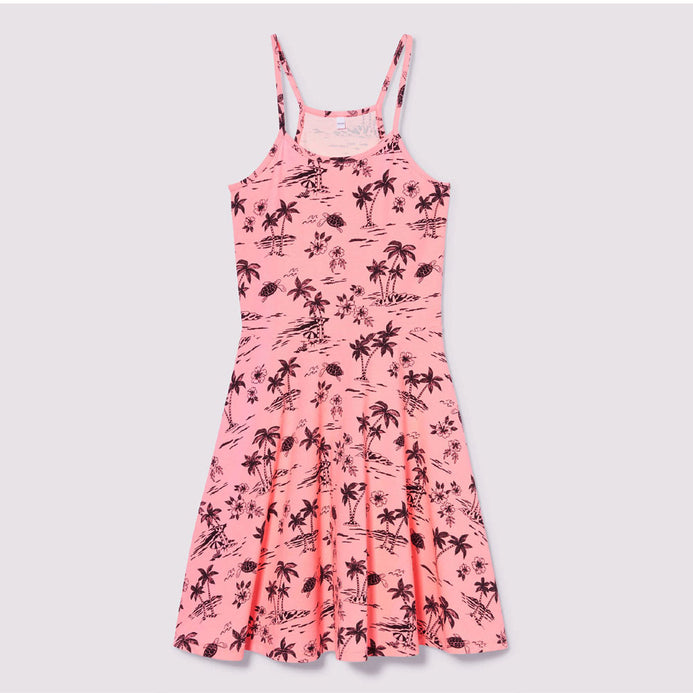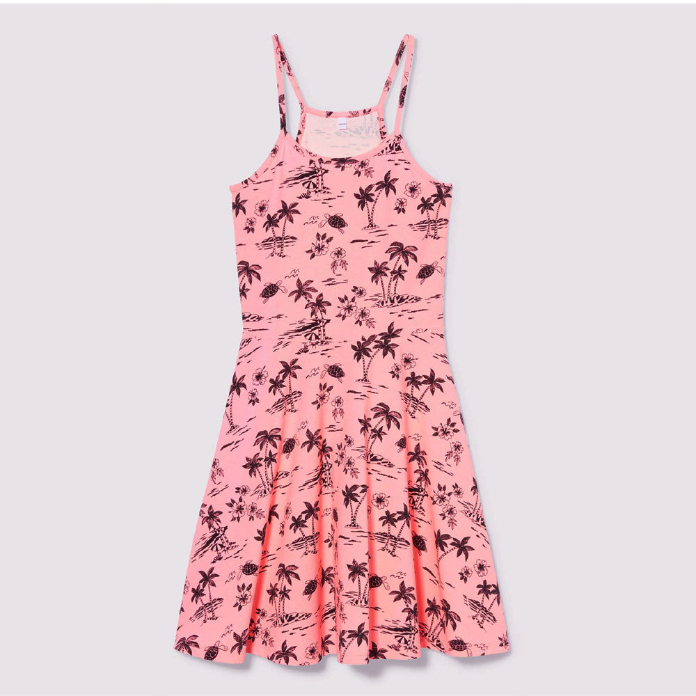 HM Beach Life Print Lose Flare Neon Pink Shoulder Stripe Frock 7047