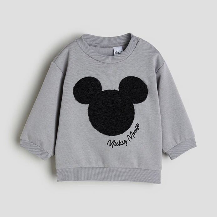 HM Front Mickey Mouse Embroided Grey Terry Sweatshirt 13407