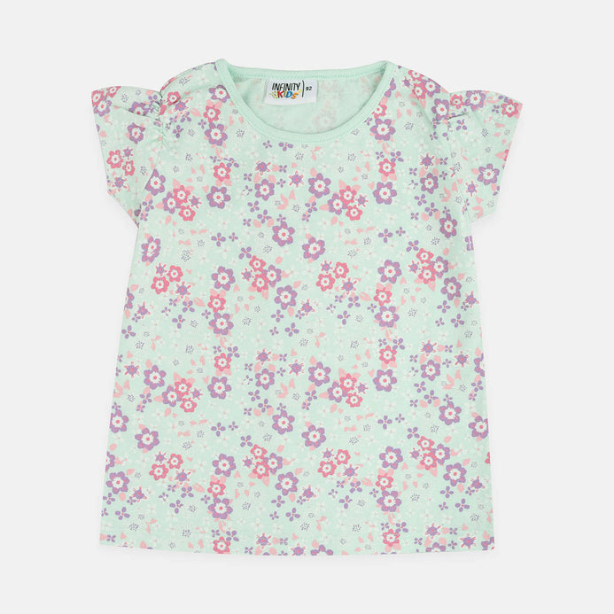 - INF Kids Floral Print Aqua Blue Tshirt 1616